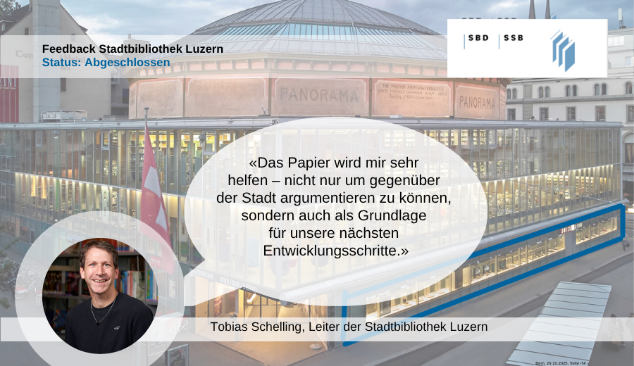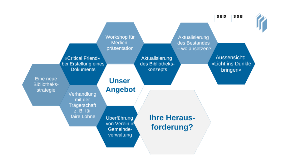 Mit der SBD Bibliotheksberatung lancieren wir ein neues Analyse- und Beratungsangebot, das sich bis Mitte 2026 in der Prototypenphase befindet. Das bedeutet: Sie haben in dieser Phase zu 100% Zugriff auf unsere Beratungsressourcen zu einem verminderten Preis. In dieser Zeit testen wir unsere Methoden in der Praxis und optimieren sie basierend auf den Rückmeldungen aus der Bibliothekslandschaft. Das neue Beratungsangebot soll es allen Bibliotheken in der deutschsprachigen Schweiz ermöglichen, sich individuell weiterzuentwickeln. Wir glauben an die Zukunft der Bibliotheken und möchten die anstehenden Transformationsprozesse in der Bibliothekslandschaft umfassend und nachhaltig mitgestalten.