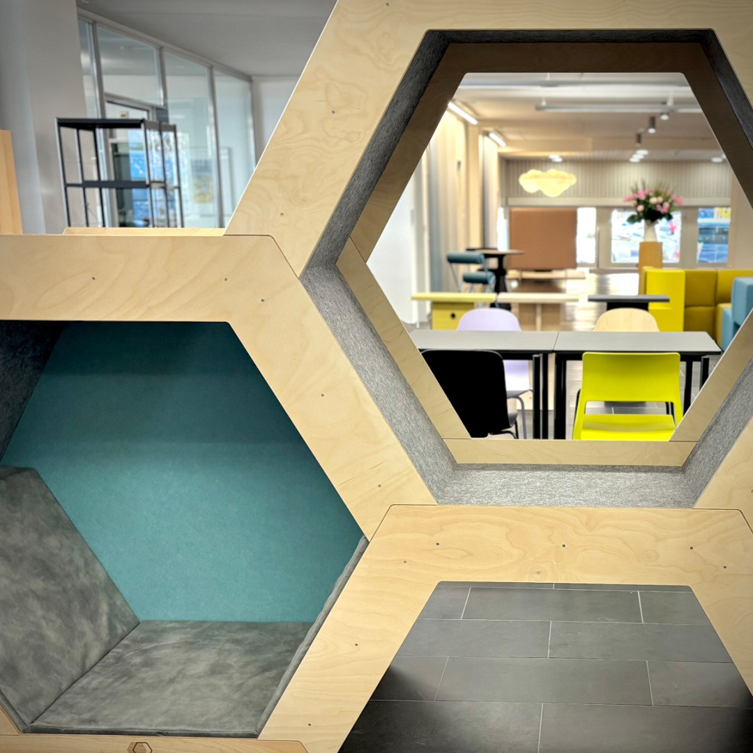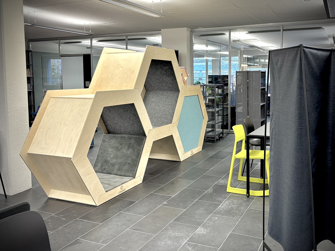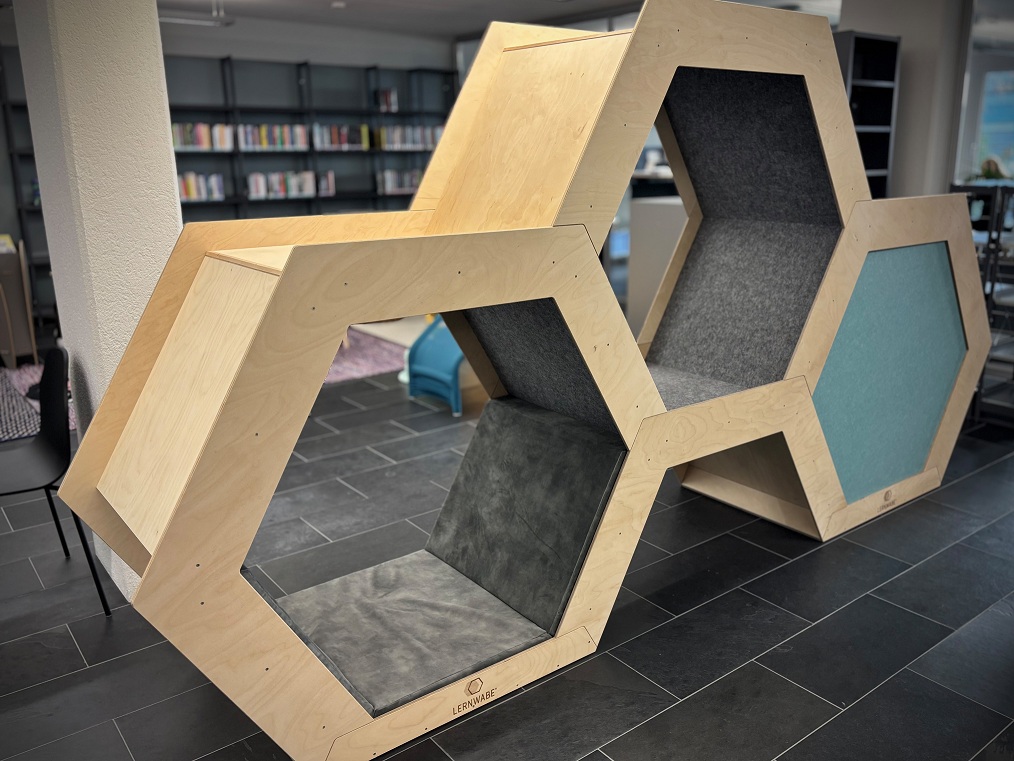 Bibliotheken fungieren als offene Lernräume, Orte der Begegnung und kreative Werkstätten. Mit der Lernwabe als modulares Möbelstück erhalten Bibliotheken ein Element, das diese Rolle ideal unterstützt: